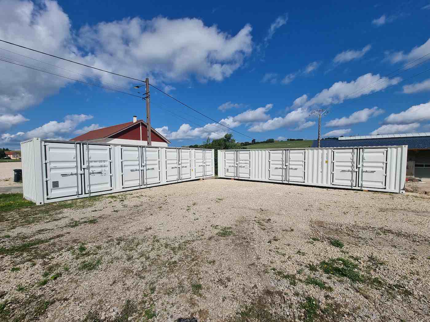 - Containers maritimes 20 et 40 pieds (14m² / 28m²)